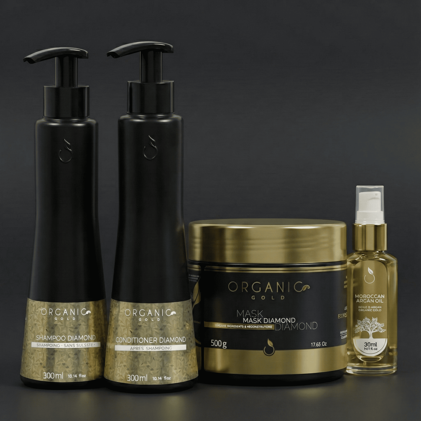 Faites du Kit Diamond Organic Gold votre allié de choix pour une chevelure digne d’un salon professionnel, dans le confort de votre maison.